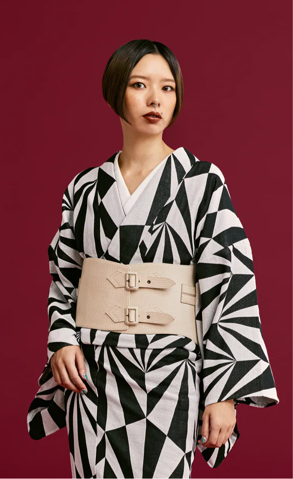 よりイージーかつスタイリッシュに着物を楽しんでもらえるよう、工夫を凝らしたデザインで、帯よりも軽く、取り外しも簡単。