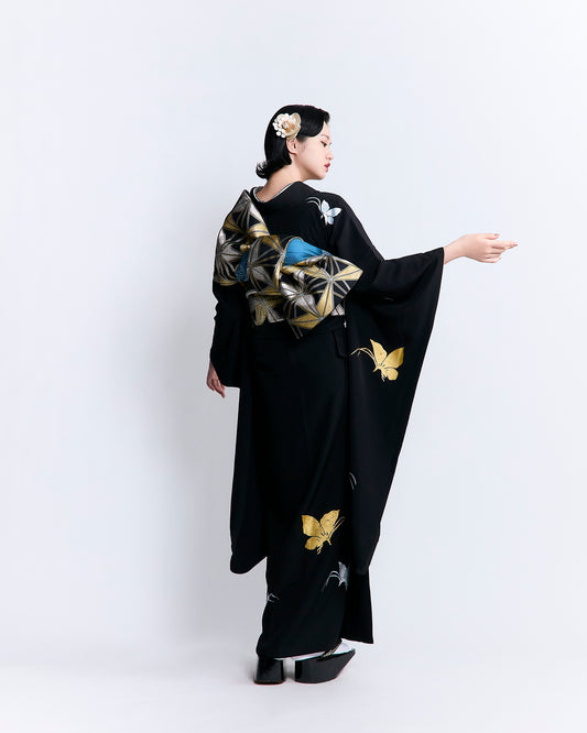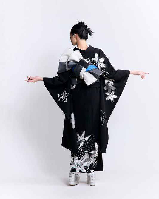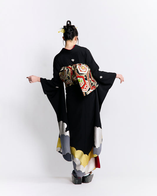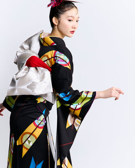 成人式振袖レンタル|月照乱華 黒 × 七宝白