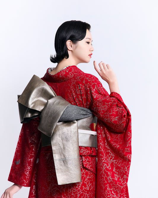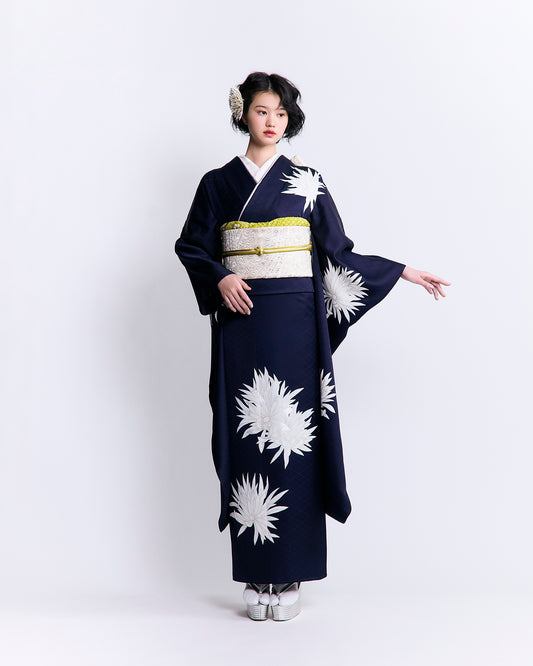 成人式振袖レンタル|線牡丹 × 雪持笹