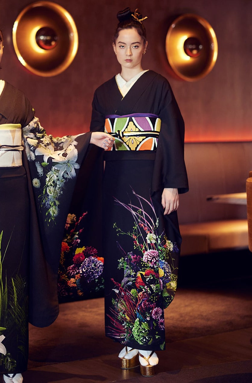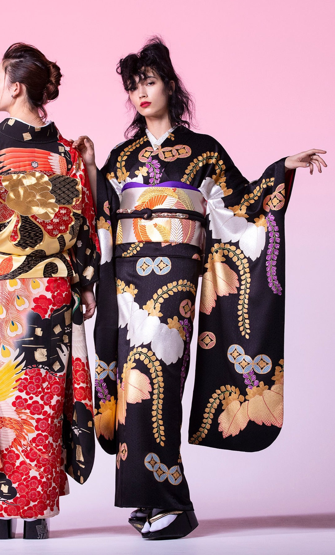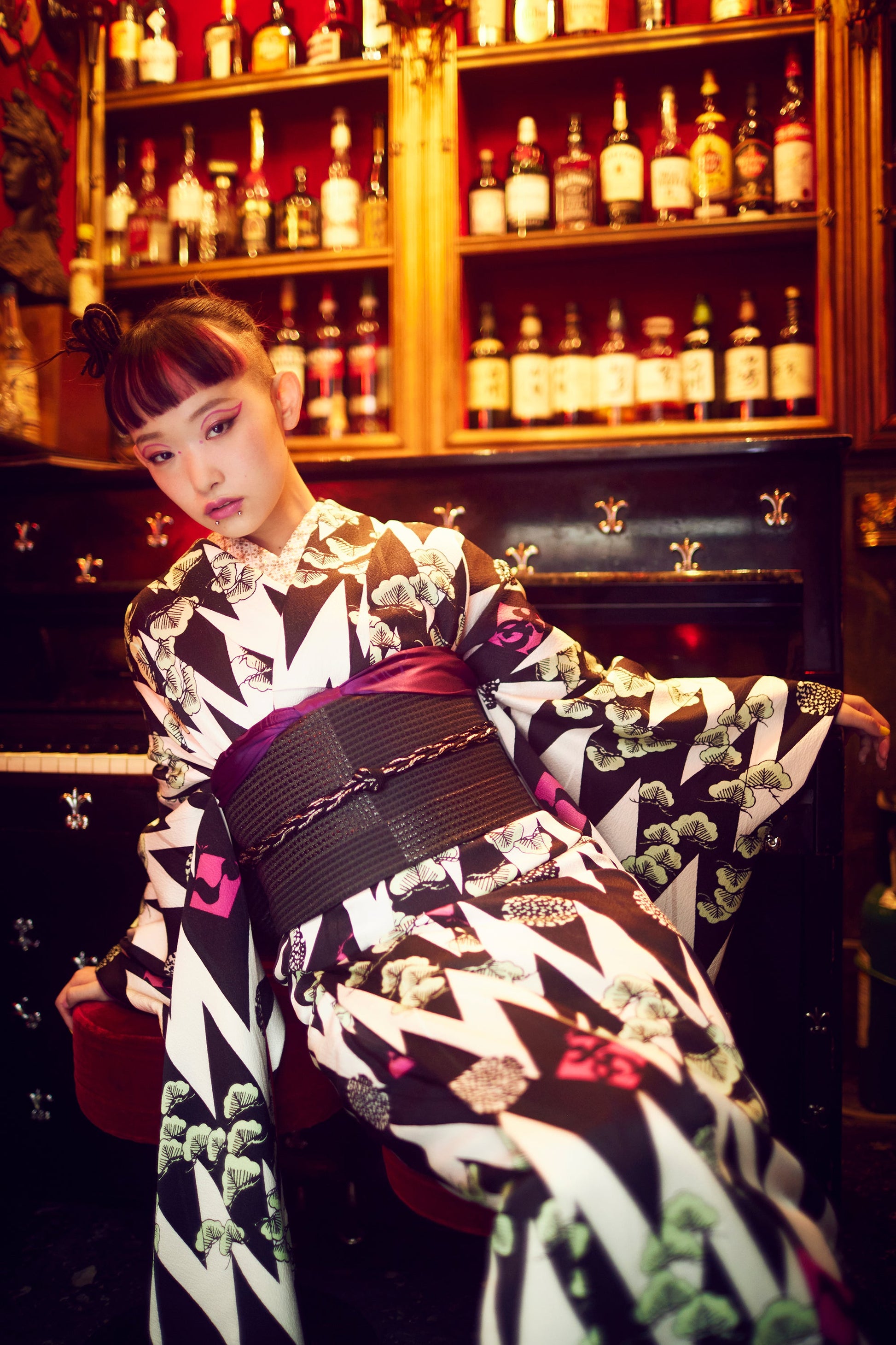 KAPUKI別注帯揚げ、ビビットな紫色がコーディネートのアクセントになり