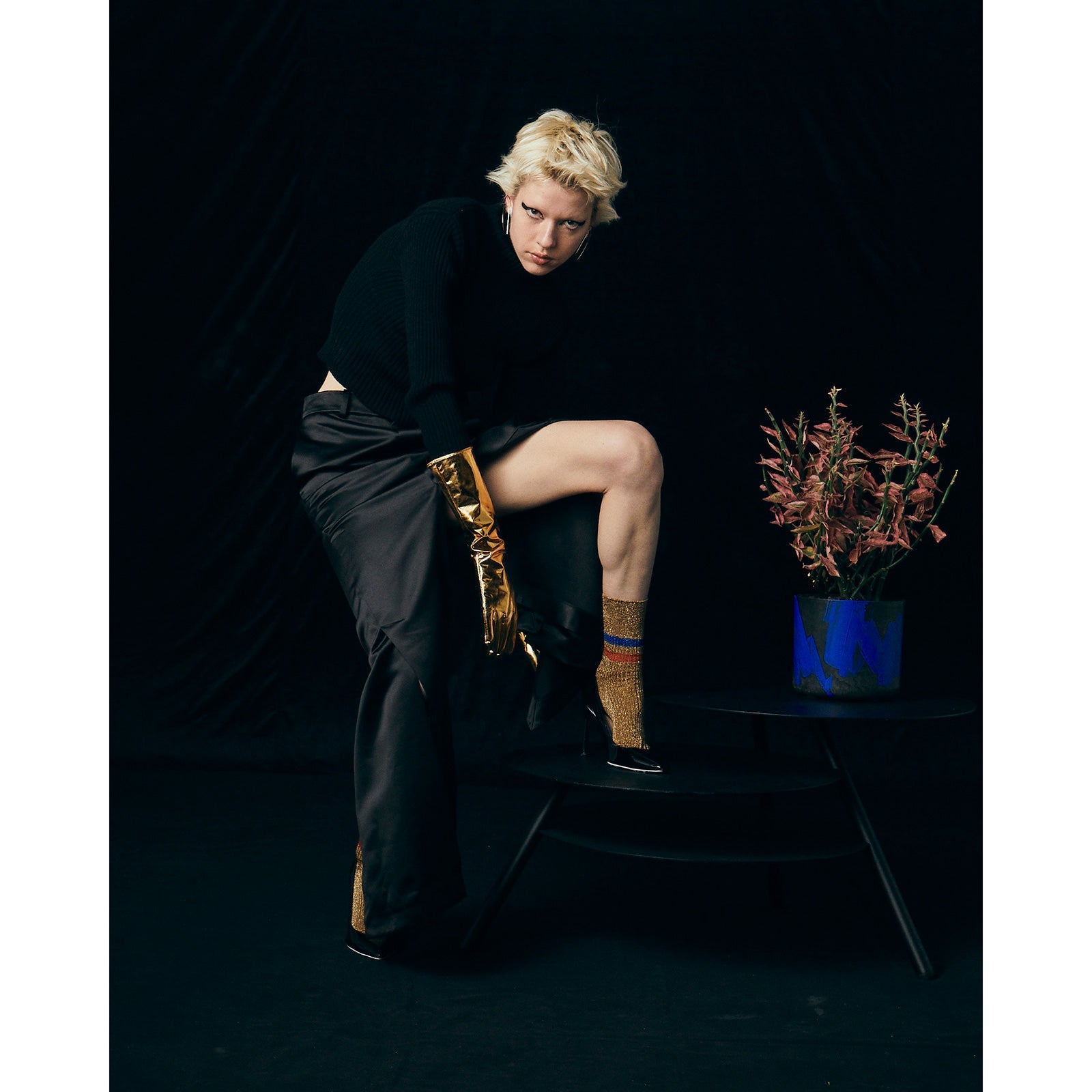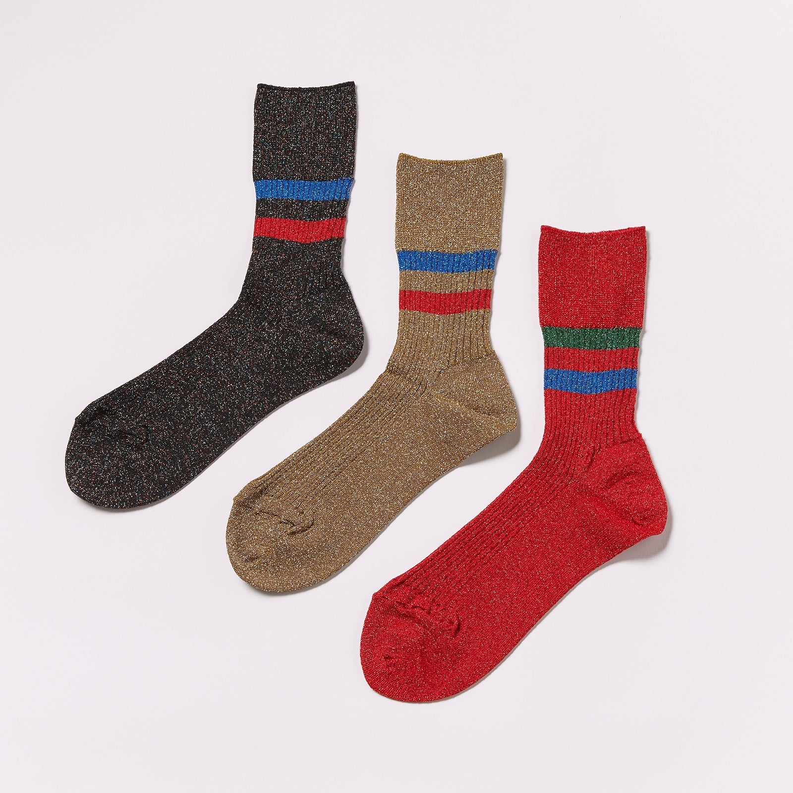 グリッターに2色のラインが映える大人のカジュアルソックス。