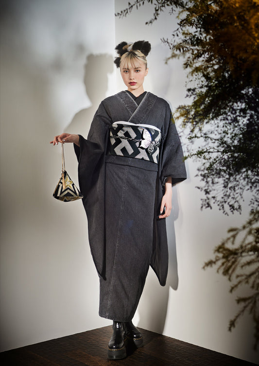 Sold out2025年 成人式振袖レンタル 「デニム振袖 ブラックケミカル」