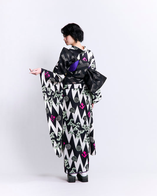 [Purchase as a set] Denim Furisode "Gray Coordinate"