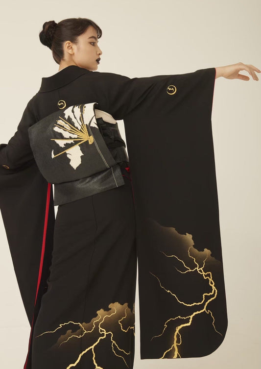 フォトプラン 黒紋付稲妻(手染め・友禅)