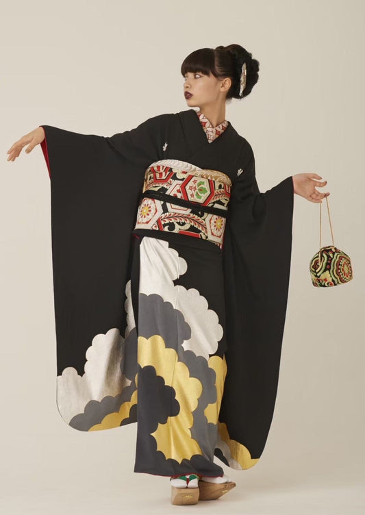 フォトプラン 黒紋付雲取(手染め・友禅)