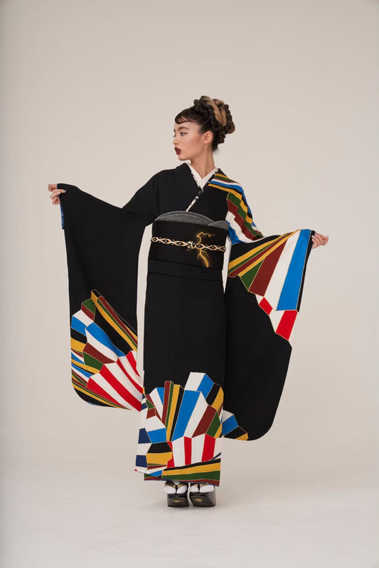 Obijime KAPUKI Bespoke [Plain Woven Arrow Pattern] Black Silver