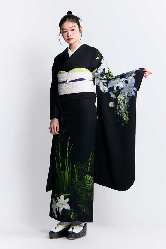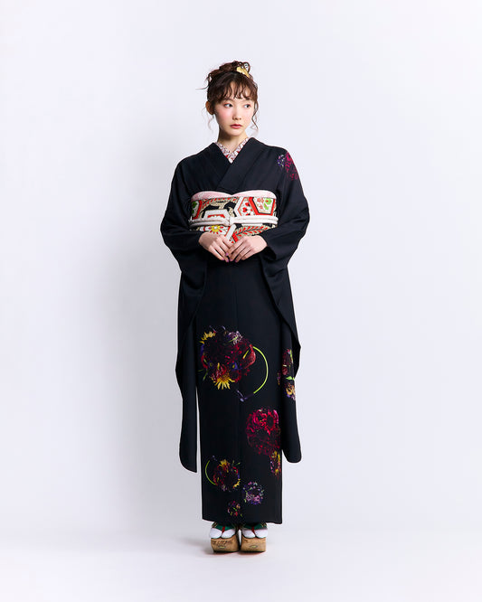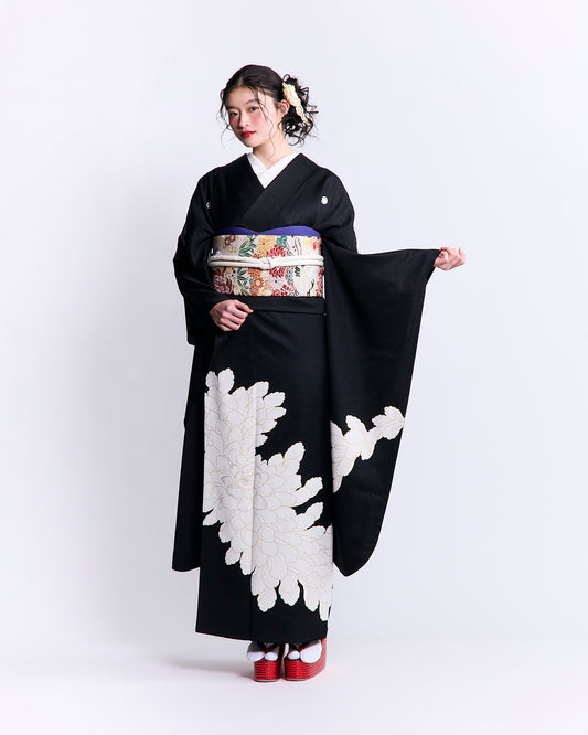 Fukuro Obi "Chrysanthemum Crane" Black