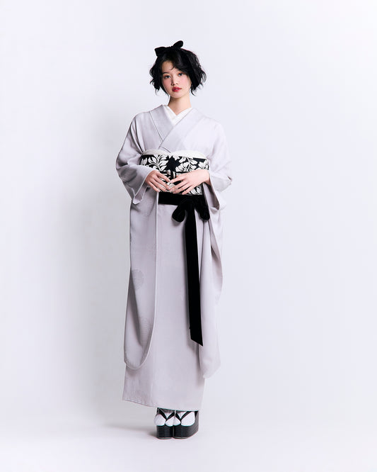 Fukuro Obi "Gin Tatami Lattice"