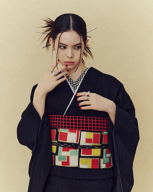 Sold outデニムブラック×モンドリアン:2027年成人式振袖レンタル