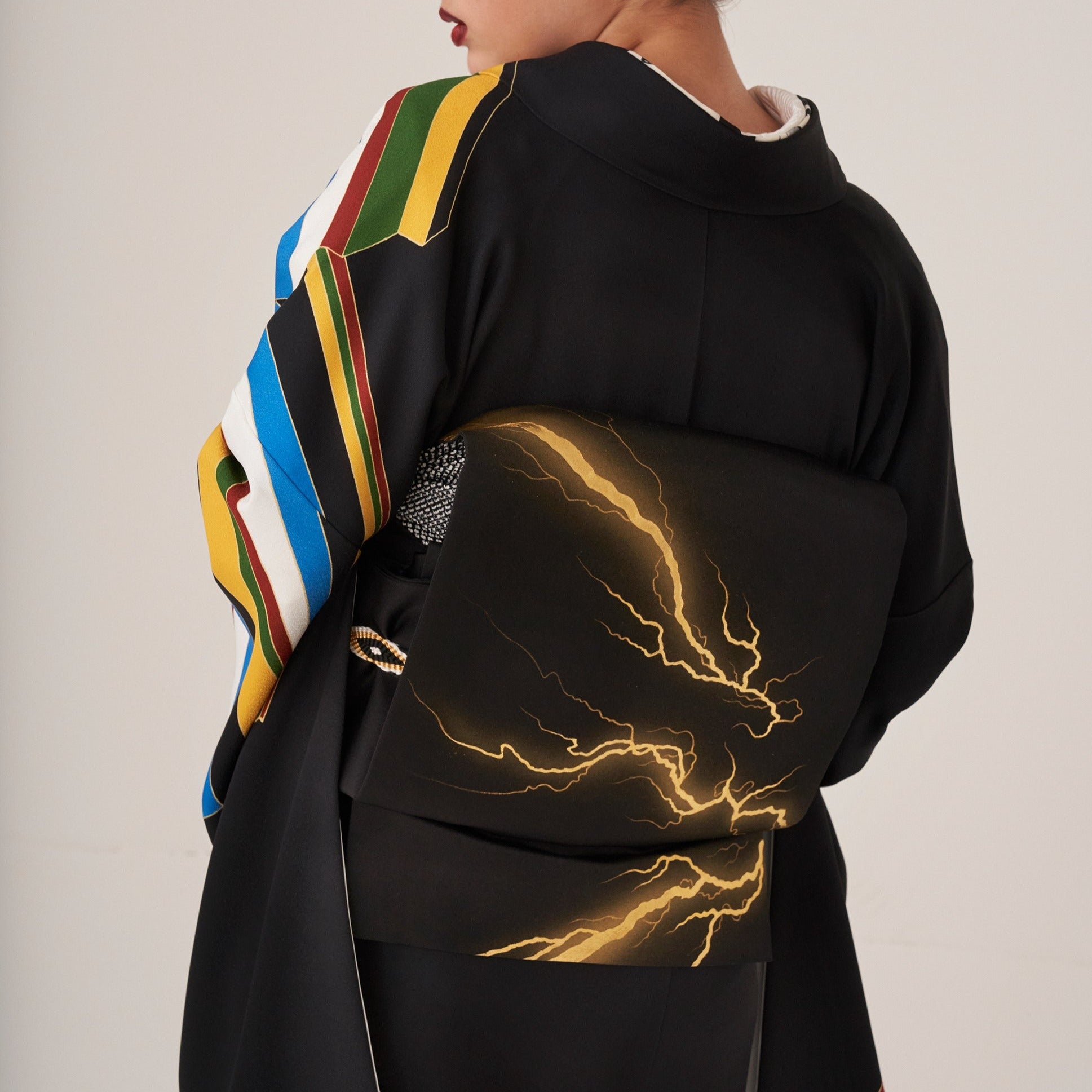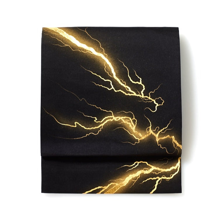 絵師 SATOSHI SUZUKI(鈴木聡)による手描き金彩稲妻帯。金箔、金泥を使用して仕上げられた逸品です。