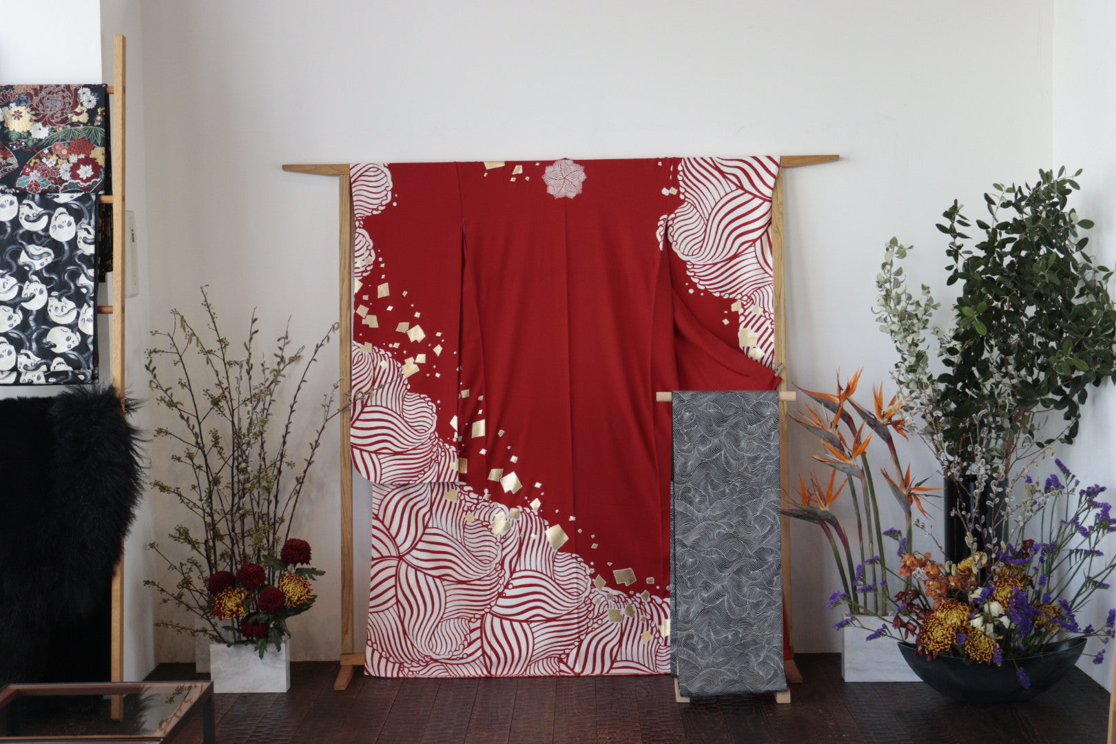 着物のコーディネートは、洋服とはまた違うセンスが求められます。KAPUKIでは帯・帯揚げ・帯締めまで、洗練されたスタイリングを得意とするプロが担当。誰とも被らない、スタイリッシュな一着に仕上げます。