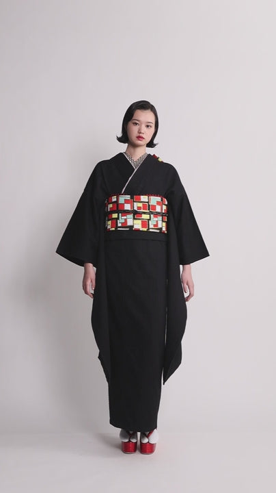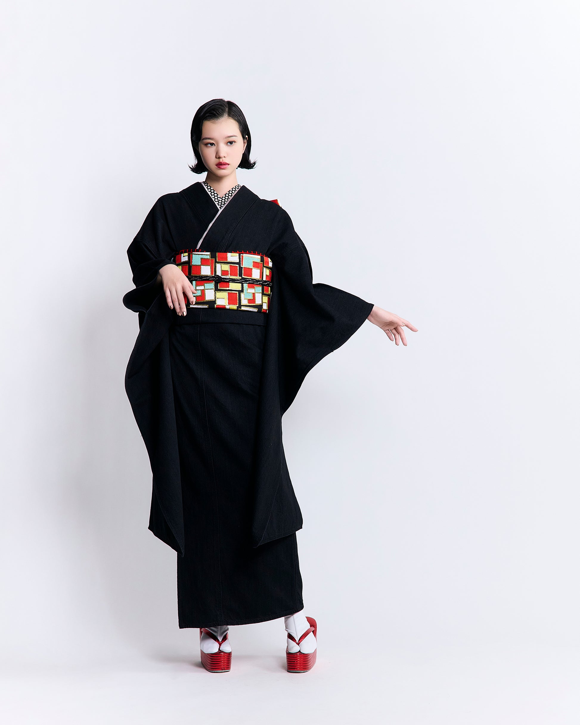 成人式振袖レンタル|デニムブラック×モンドリアン